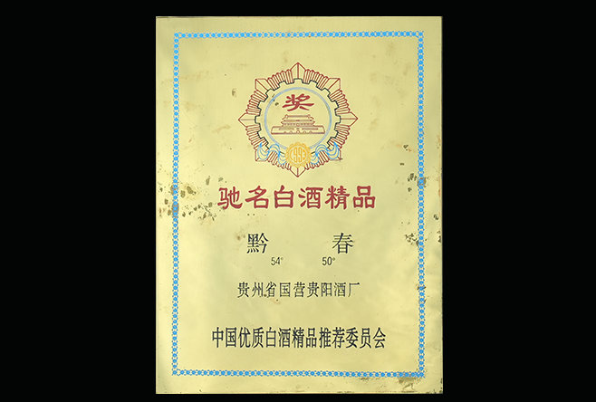 黔春酒——1988年中华人民共和国国家质量奖“优质奖”