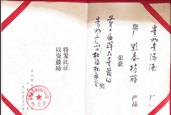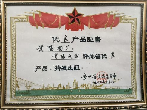贵阳大曲——1979年“省优良产品“证书(贵州老八大名酒证书)