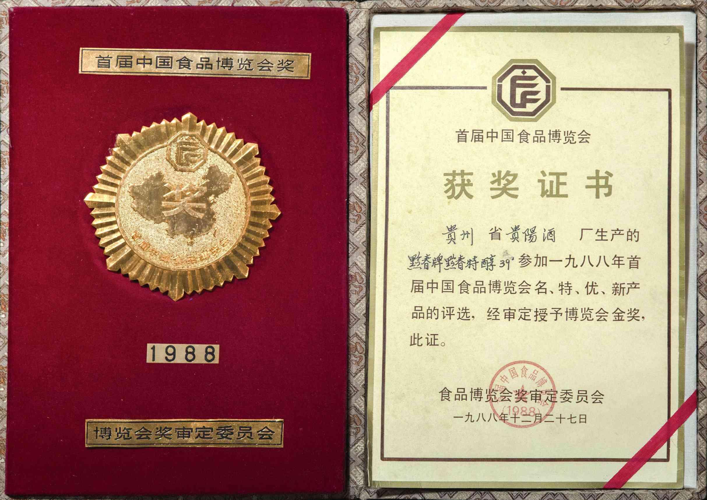 1988年首届中国食品博览会金奖