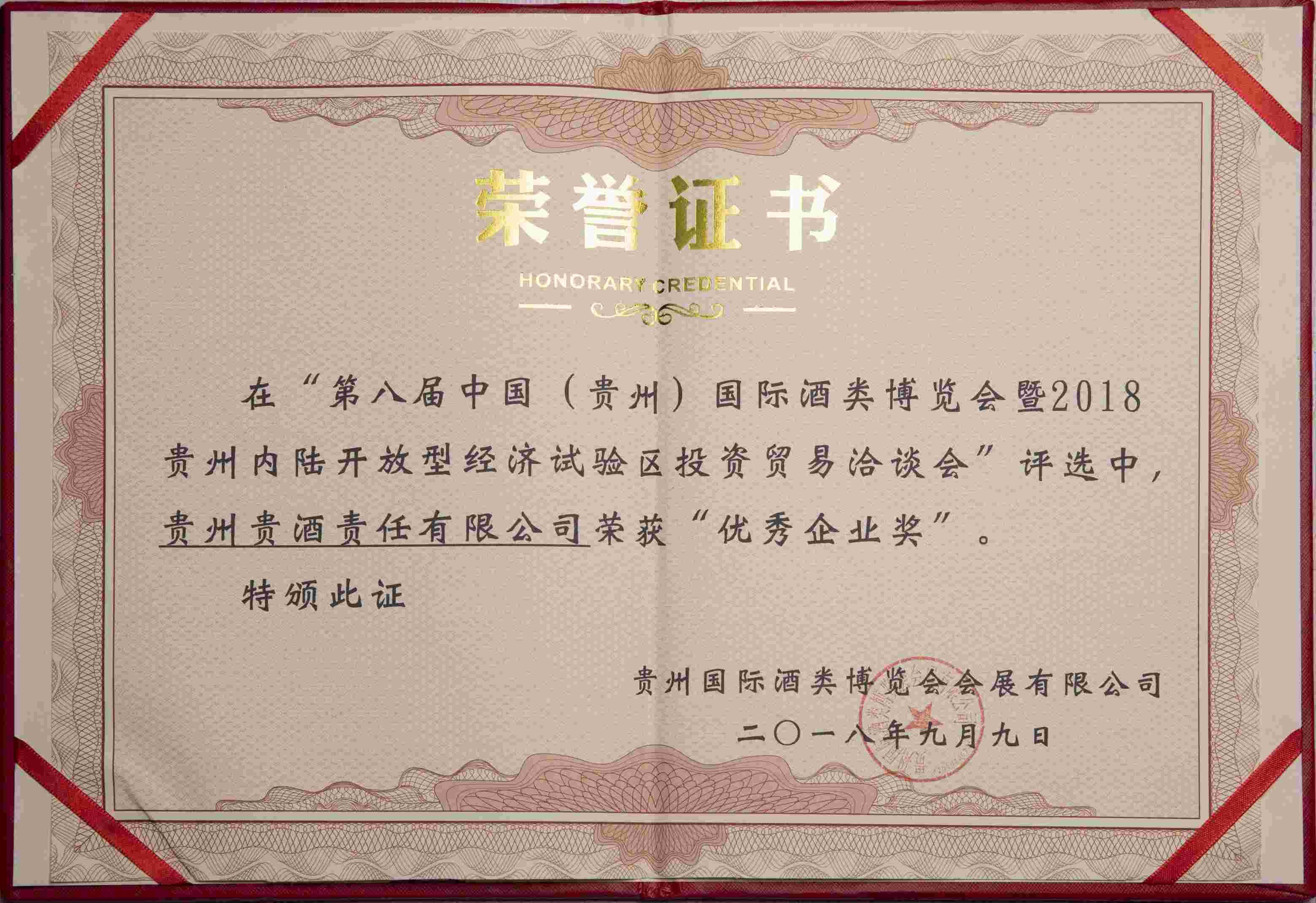 2018年第八届中国(贵州)国际酒类博览会——优秀企业奖