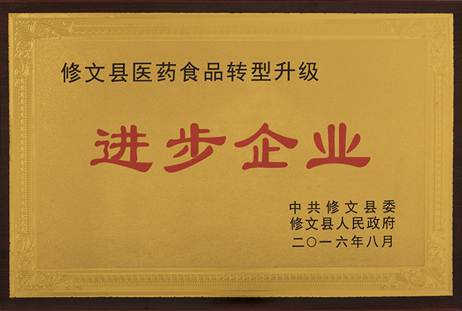 2016年修文县医药食品转型升级进步企业